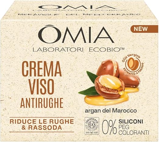 | CREMA VISO | 🧼 Crema Viso Antirughe Omia, all’Argan del Marocco e Acido Ialuronico, Riduce le Rughe e Rassoda la Pelle, Senza Siliconi e Coloranti, Adatta a Tutti i Tipi di Pelle, 50 ml . Vegana e testata al nichel, cobalto e chromo | ![]() | Acquista su Amazon |