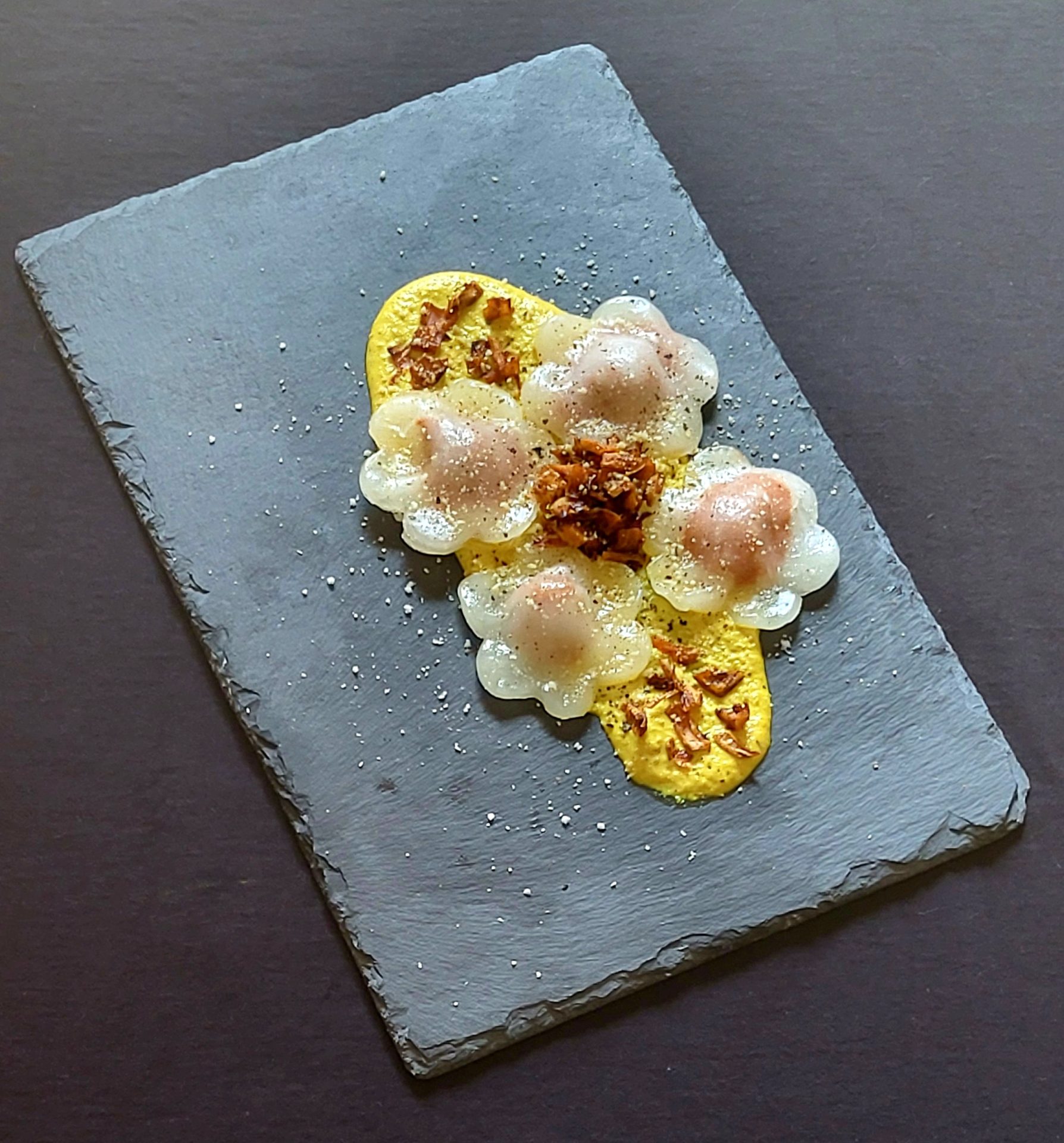 Di carbonara vegana ormai è pieno il web e l’abbiamo vista in tutte le salse. Io ve la propongo in versione “pasta ripiena” colorata . Il ripieno è a base di tuorli d’uovo vegani , parmigiano di pinoli che sostituirà il pecorino , una carbocrema a base di anacardi e pepe. Per la finitura del piatto utilizziamo il jackfruit croccante che sostituirà il guanciale. Ingrediente principale ,per ricreare anche il sapore tipico delle uova è il SALE KALA NAMAK, troverete nella ricetta anche il link per poterlo acquistare 🛒.Il metodo utilizzato per il ripieno può anche essere valido per mantecare una classica carbonara..I miei “raviolini estivi” vi conquisteranno con la loro leggerezza!
