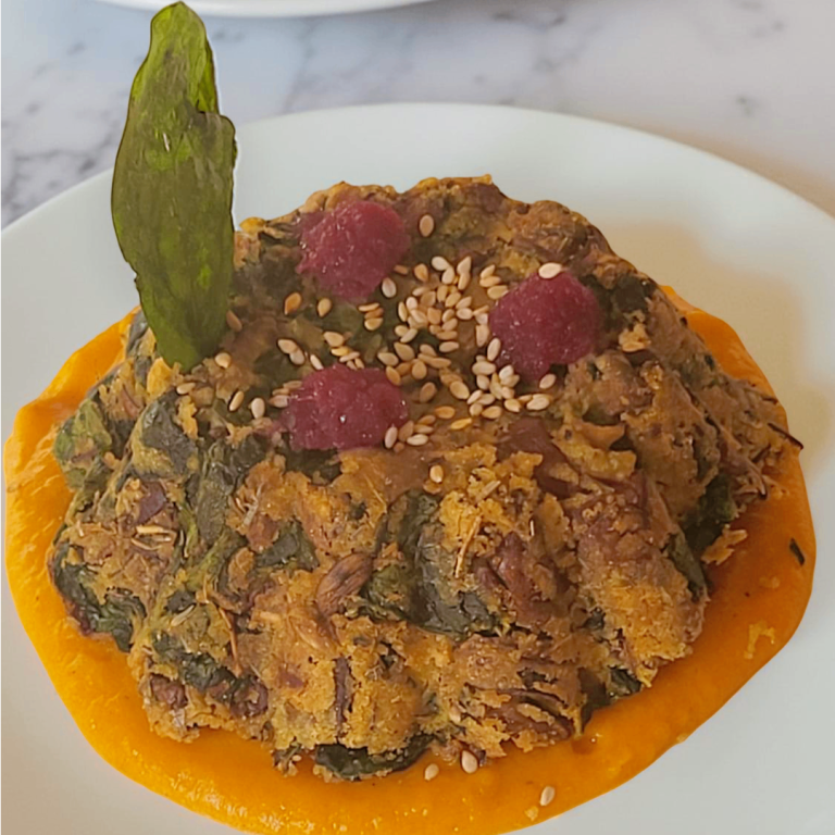Una base soffice e vellutata di zucca, dal cuore verde e intenso di spinaci, bilanciata da un elemento croccante e da un tocco di gel di riduzione scura che pulisce il palato. Un piccolo, elegante assaggio di stagione. Tanti consigli e suggerimenti per un impiattamento perfetto alla fine della ricetta.Non si tratta solo di guarnire, ma di costruire il piatto come un’opera d’arte, dove ogni elemento ha una funzione estetica e strutturale.