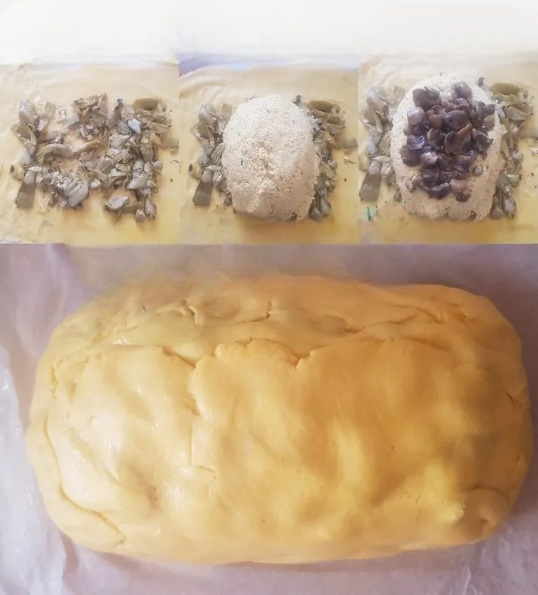 Assemblaggio e cottura : Stendete la pasta brisee in una sfoglia sottile, di dimensioni tali da poter contenere l’arrosto e avvolgerlo. Sulla pasta brisee stirata, mettete i carciofi saltati in padella con lo scalogno , ponete l’impasto dell’arrosto al centro farcitelo con i funghi e avvolgetelo con la pasta. Chiudete bene e ripiegate i bordi.Mettete in forno a180°C per 30-35 min. Quando la superficie sarà dorata allora sarà pronto. Tiratelo fuori dal forno, copritelo con un pò di carta forno. Dopo 15 min. vedrete che la crosta sarà più morbida ed allora potrete affettarlo.Oppure direttamente nel cestello della friggitrice ad aria a 180° per 25-30 minuti ( a seconda della dimensione dei vostri arrosti).