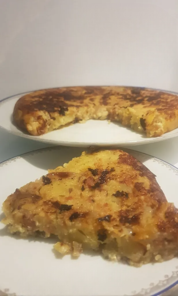 Poi aggiungete il composto di patate, appiattite e roteate con la padella, in modo che immediatamente non si attacchi.