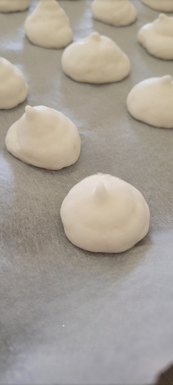 Trasferisci la meringa italiana in un sach à poche. Cuocila in friggitrice ad aria a 120 gradi per 10 minuti, poi a 100 gradi per altri 50 minuti.Lasciarle raffreddare senza aprire lo sportello.OPPURE IN FORNO Cuocete in forno statico a 90°/100° per 1 ora e mezza , fino a quando le meringhe saranno perfettamente asciutte e dure, Di tanto in tanto controllare che non si stiano ingiallendo, ed eventualmente abbassare la temperatura a 80°-85°. Di tanto in tanto potete aprire il forno e controllare la situazione, se mai dovessero esserci crepe significa che il vostro forno è troppo alto! abbassate la temperatura a 80 – 85°.Dopo 1 ora e mezza, inserite nel forno 1 cucchiaio di legno in modo che resti una fessura d’aria e prolungate la cottura per un’altra ora.Trascorso il tempo indicato spegnete il forno e lasciate le meringhe in forno spento con cucchiaio di legno che lascia la fessura per qualche ora. Questo è il trucco per avere meringhe perfettamente cotte e asciutte!!! non molli! e che risultano friabili al morso.ecco le meringhe perfette!
