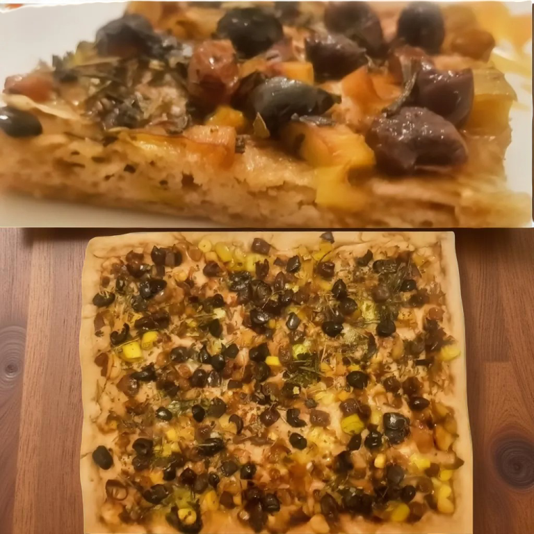 - Copri con i porri ,uvetta e qualche oliva.