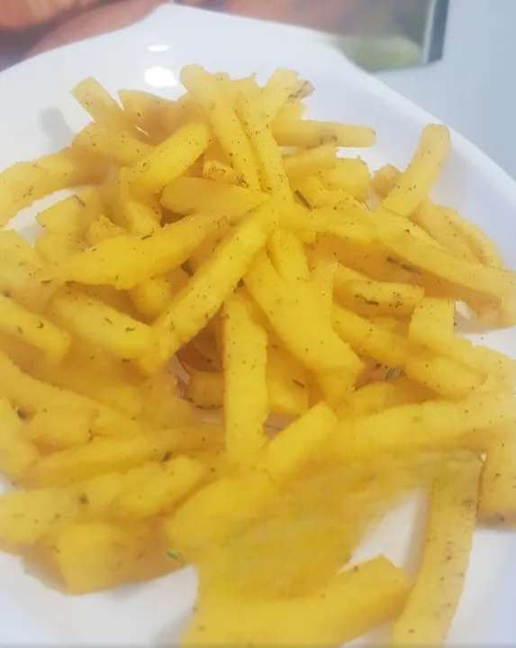 Inserite delicatamente le patatine nel cestello della friggitrice ad aria facendo in modo che non si sormontino. Fate cuocere le patatine a 204° per 15 minuti, avendo l’accortezza di agitare il cestello a metà cottura, fatelo con delicatezza perché le patatine di polenta sono più delicate delle classiche patatine fritte . Quando saranno pronte mettetele su un piatto da portata e portatele a tavola ancora calde e fumanti. Controllate sempre la cottura del cibo cotto con la friggitrice perché i tempi di cottura possono cambiare da modello e marca. Io personalmente le lascio qualche minuto in più a cuocere perché la polenta mi piace molto con quella crosticina abbrustolita.Per condire: aromi vari, io ho usato ARIOSTO PER PATATE FRITTE E ARROSTO