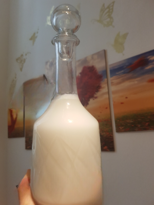 Infine, con l’aiuto di un imbuto, versate il vostro latte in una bottiglia di vetro.