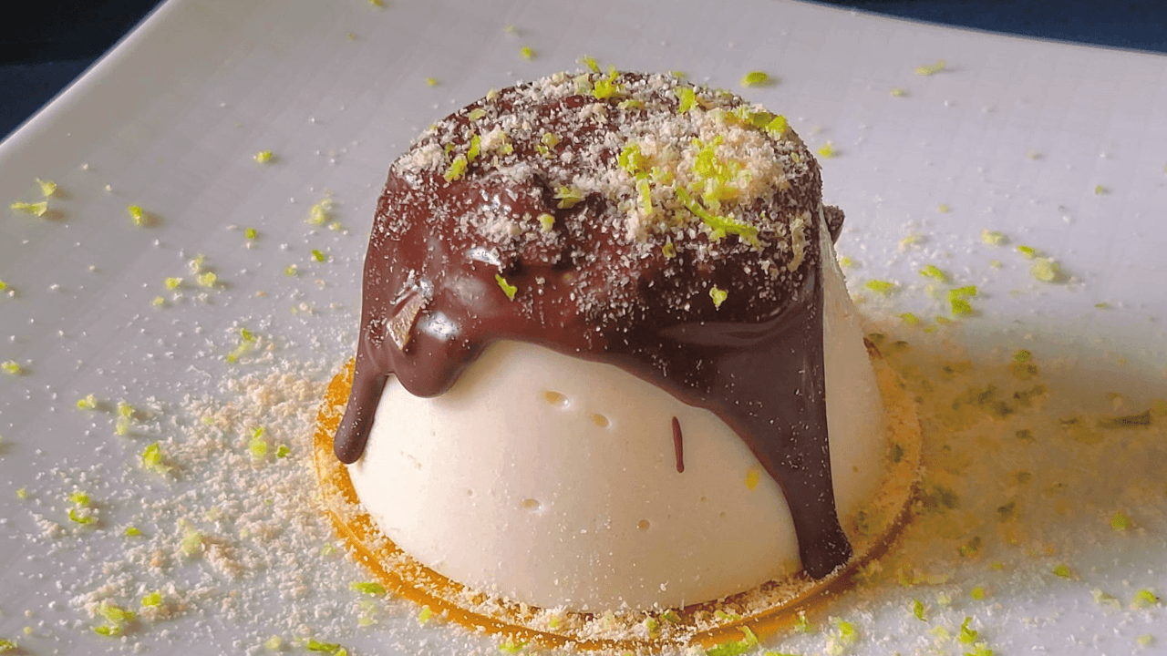 Preparate il cioccolato fuso a bagnomaria,allungate il cioccolato con olio di cocco (se l’avete) per renderlo più liquido, inserite qualche nocciola e pistacchio tritati ( se desiderate).Sforma la panna cotta e appoggiala sopra la gelatina di limoncello già soda sul piatto.Versa sopra il cioccolato fuso e metti in frigo per qualche minuto.