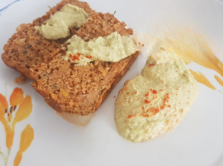 - Cottura : Rivestite lo stampo da plumcake con carta forno e spruzzate leggermente con un po’ di olio prima di versare l’impasto. Infornate poi il tutto a 180° per circa 40 minuti in forno statico fino a che la superficie del plumcake non sarà ben dorata.Un plumcake molto morbido all’interno e croccante fuori !!! Il plumcake che rimane si conserva per qualche giorno in frigorifero o potete congelarlo come faccio io , e tirarlo fuori quando più be avrete voglia. Io ho accompagnato il mio plumcake con un altro tipo hummus ( dopo il classico di ceci che trovate nel mio gruppo o nel mio blog )Hummus di edamame !!!
