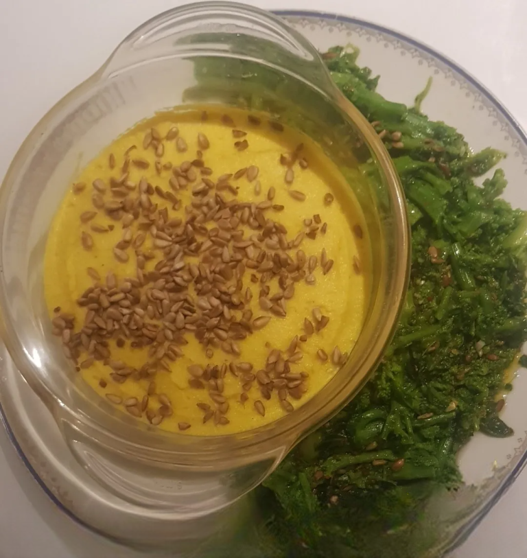 Purè di patate alla curcuma con cime di rapa