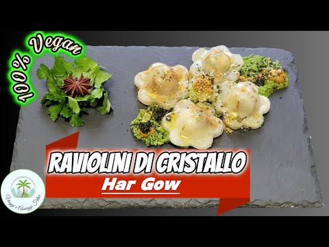 Per 8 Raviolini di cristallo ( o har gow) : Prepariamo l’impasto. Setacciamo la frumina e l’amido di mais in una ciotola, creiamo una fontana e poco alla volta aggiungiamo acqua bollente ( fatela bollire) in modo che venga assorbita del tutto . L’acqua bollita cuoce l’amido e rende l’impasto più elastico. Una volta che l’acqua è bollita, versala mi raccomando a poco a poco mescolando contemporaneamente con una forchetta, e mescola bene per farlo “bruciare”. Lavoriamo con le mani , copriamo con pellicola trasparente e lo facciamo riposare per 10 minuti affinché si raffreddi prima di impastarlo.Riprendiamo l’impasto e lavoriamolo molto energicamente , lavoriamolo al centro e ripieghiamo i lati al centro, continuiamo così finchè la consistenza non diventerà un pò più elastica,aggiungiamo olio vegetale , anche questo faciliterà l’elasticità della pasta , dividiamo l’impasto in più parti e copriamo in una ciotola evitando che così si asciughi. Formiamo dei cilindri.Prendi un pezzo d’impasto ed arrotolalo a forma di tronco.Dividi in piccoli pezzi ciascuno del peso di circa 15g. Arrotola ogni pezzo per formare una palla.