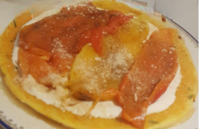 Rotolo di frittata omelette veg di farina di ceci con formaggio spalmabile e peperoni arrostiti