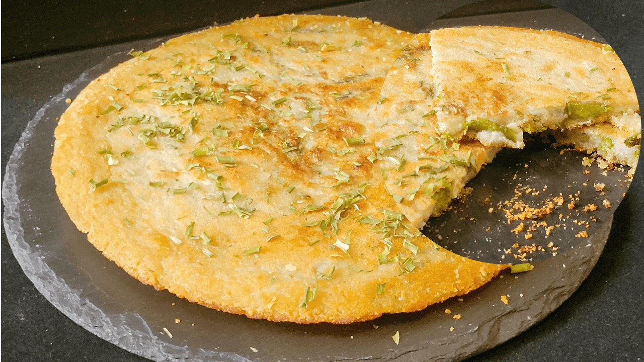 Non è una semplice focaccia, ma una Schiacciata di Magro, pensata per rifocillare il corpo senza gravare sullo spirito. La base di riso conferisce una croccantezza antica, quasi ferrosa, che si sposa con la dolcezza pungente del cipollotto novello. Ma il vero segreto risiede nelle Spezie Fini: lo zenzero, che scalda il sangue contro l’umidità delle piogge primaverili, e la cannella, polvere regale che trasforma un pasto umile in un banchetto degno di un signore. Una vivanda dorata in padella, croccante come una corazza e profumata come un giardino d’Oriente.