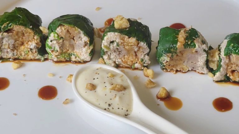 “Spinaci Maki” vegani: rotolini di castagnina e salsa di noci