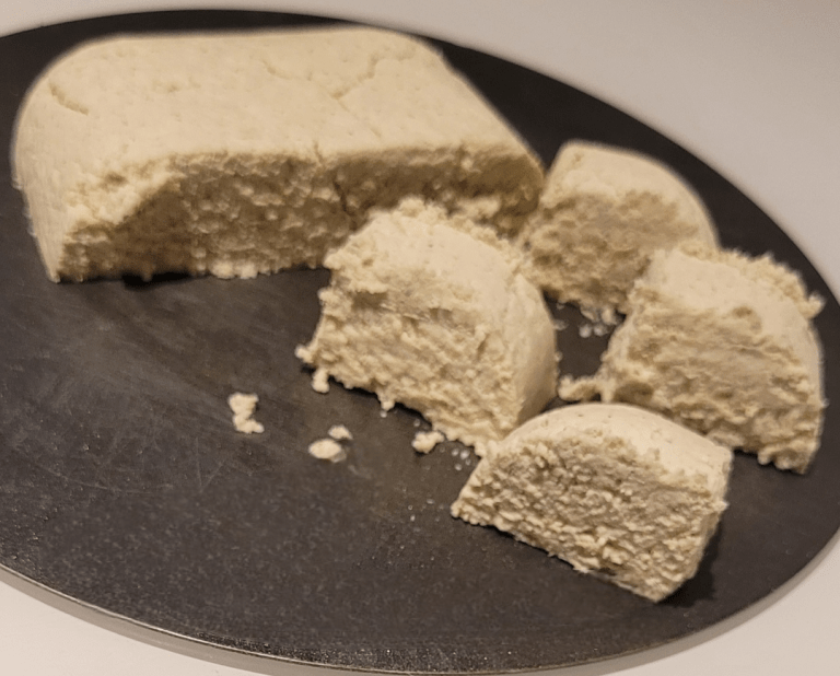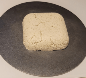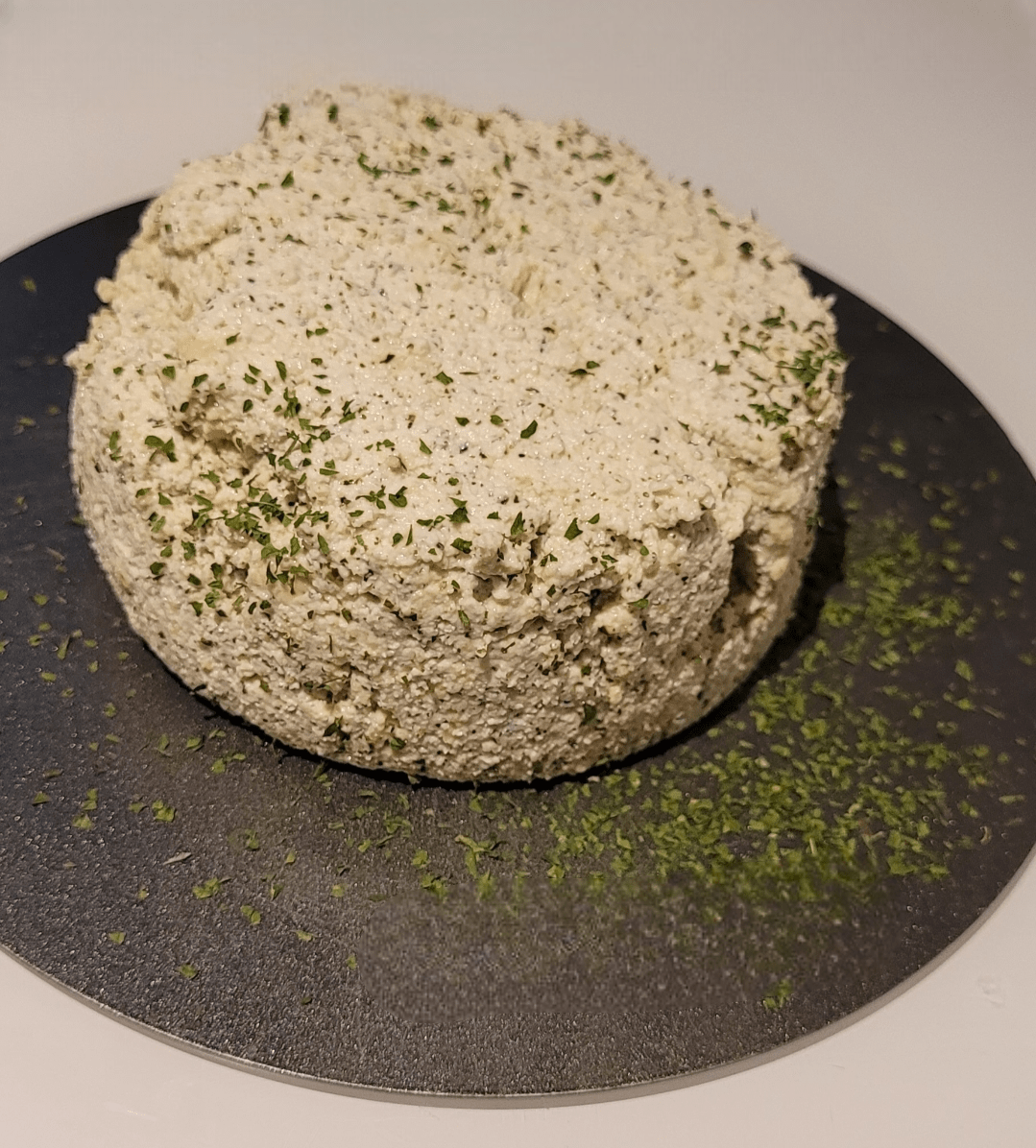 FORMAGGIO FERMENTATO DI OKARA DI SEMI DI CANAPA : Formaggio vegetale realizzato con l’okara rimasta dalla preparazione del latte di CANAPA e del TOFU DI CANAPA.