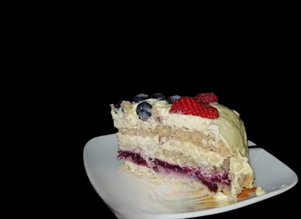 Ora coprite la torta con crema chantilly e decoratela con i frutti di bosco freschi e fragole !La crema può essere aromatizzata in mille modi Io ho voluto fare diciamo la “classica crema Chantilly” Ma si può aromatizzare al posto della curcuma …con cacao, caffè, frutta …etc. Cosi come il pan di Spagna… una piccola parte della farina può essere sostituita ad esempio con del cacao.