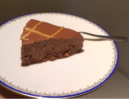 - Montate la panna e aggiungetela con gli altri 100 gr di cioccolato fuso e versatela sulla torta, che avrete tolto dal freezer.